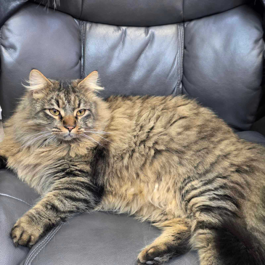 Мальчишке 1 год, очень крупный ( около 7 кг). По характеру - иногда сам себе на уме, но чаще любит пообщаться с людьми, потереться и погладиться. Кушает как сухой корм, так и обычную еду. Особенно любит куриные шейки. К лотку приучен, кастрирован . Можно как в квартиру, так и в частный дом . Звоните, отвечу на любые вопросы. Сразу скажу: парень очень харизматичный )