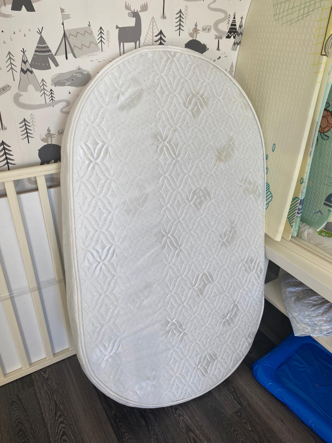 В комплек отдам два матрасики, овальный и круглый, плюс простыни на резинке, для этих матрасов.Ванночка с горкой белого цвета и пеленальная доска и бортики в кроватку, пойдут в подарок реальному покупателю, кто будет забирать кроватку.