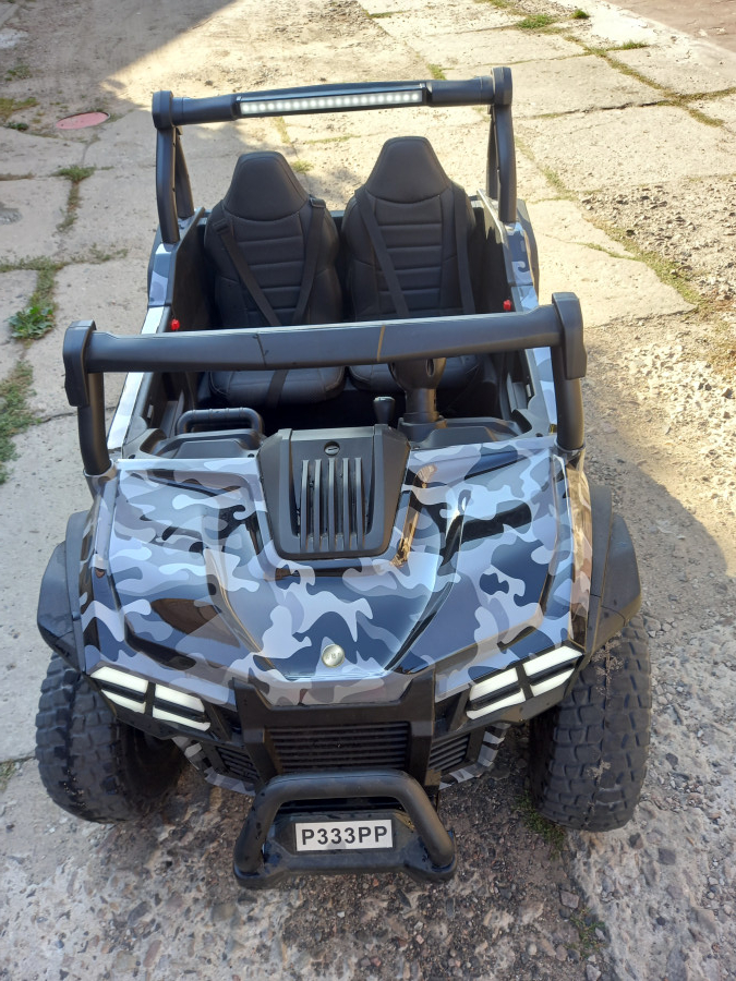 Детский электромобиль Багги Р333РР с дистанционным управлением. 2х местный, полноприводной.Аккумулятор 24 v, световые эффекты, фары передние, руль-звук клаксона, колеса каучук, скорость 3-7 км. Коробка автомат, взад/вперед, сиденье экоклжа, двигаются вперед -назад, ремень безопасности, блютуз, медиа панель, двери открываются. Размер141*94*82. Максимальная нагрузка 59 кг.автомобиль в отличном состоянии, ребенок катался мало, так как живет в РФ.Цена 1200 бел рублей