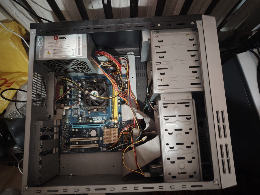 Оперативная память hynix на 2гб (ещё есть свободный слот, можно увеличить память), мат. плата Gigabyte, неплохой блок питания QDION QD400, жёсткий диск Seagate на 160гб, простой, но хороший монитор Dell с диагональю 17 дюймов.