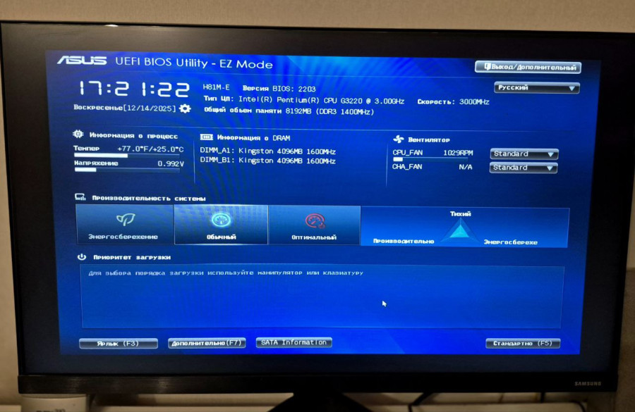 Системная плата Asus H81M-E с интегрированной видеокартой.
