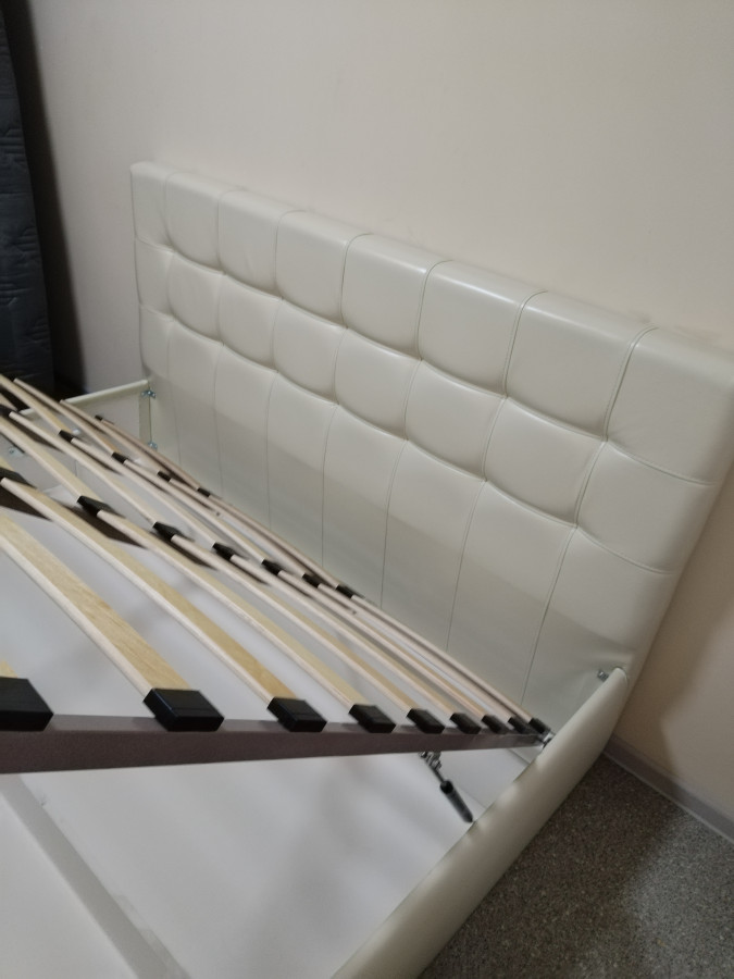 Состояние идеальное. Бу с июля 2025г. Плотная качественная экокожа, ниша для белья и вещей. Ортопедические ламели крепкие рассчитаны до 360 кг на двоих.