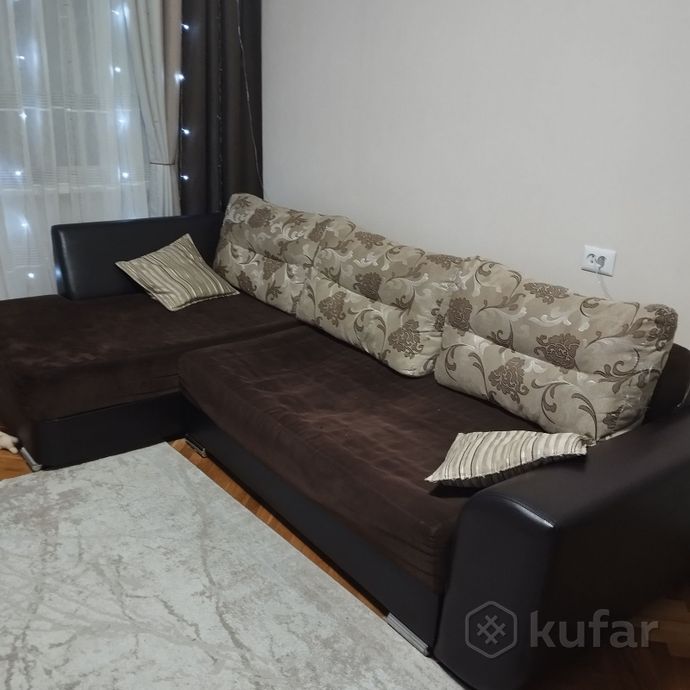 СРОЧНО продам угловой диван фирмы "Экомебель", название дивана "Милан-9", можно посмотреть в интернете на сайте. Диван б/у, подойдёт на дачу или съемную квартиру. Подлокотники экокожа, все остальное текстиль. Есть небольшие дефекты на основной сидушке. Большая ниша для белья с угла дивана и отсеки для хранения в середине дивана. Размеры 261*156*70. Отлично встанет к стене длиной 3 метра. Самовывоз. Цена 350 руб. Диван разобран.