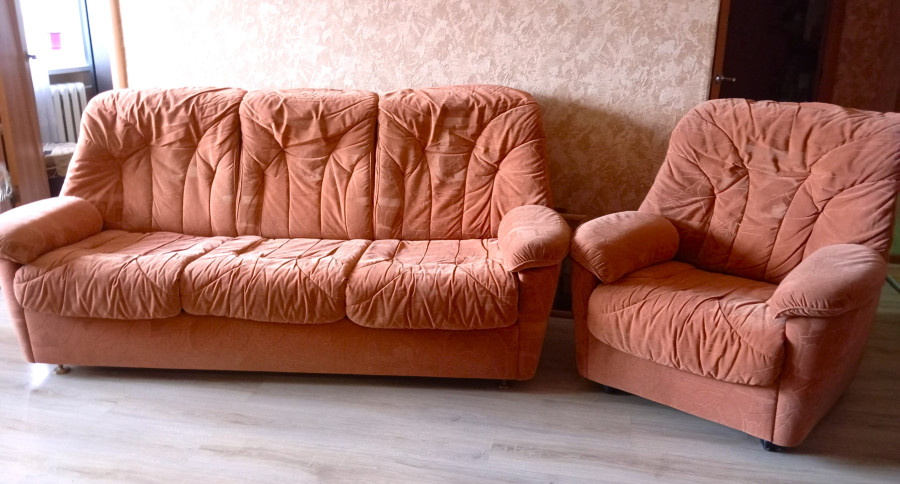 В связи с переездом продаем мягкий уголок с большим раскладывающимся вперед диваном. Механизм исправен, раскладывался очень мало, последние годы стоял без использования. Состояние нормальное. Для гостиной или на дачу. Цена 300 р.