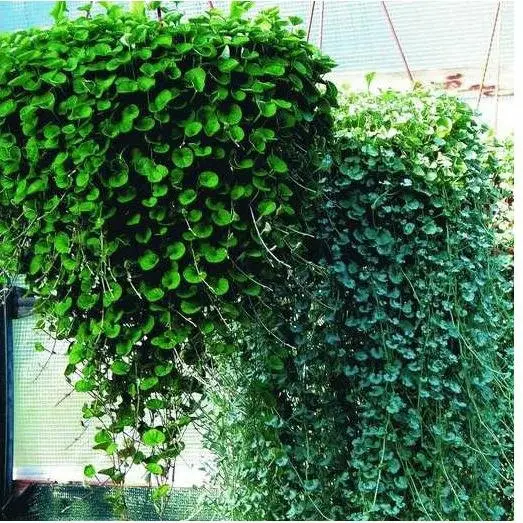 Многолетнее растение, выращиваемое как однолетник. Образует великолепный каскад зелени из круглых ярко-зеленых листочков размером с мелкую монету и небольших цветков. Тонкие многосчисленные плети стелются по поверхности почвы или свисают вниз на 1, 5 метра и более. Дихондра - одна из лучших декоративно-лиственных культур для кашпо и подвесных корзин. Сохраняет декоративность в течении всего периода выращивания.