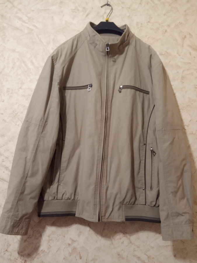 Куртка ветровка Leima с трикотажным поясом и внутренней частью воротника, по бокам двойные карманы, б/у в хорошем состоянии, без дефектов. ПОГ 67см, ПОБ 54см (трикотажная резинка, хорошо растягивается), длина 72см, длина рукава 66см, по плечам 55см. 30 руб.