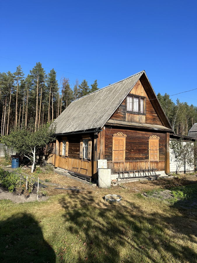 Продается дача в ст Большая Гута, участок граничит с сосновым лесом, на участке дом с пристроенным к нему гаражом, баня, сараи, туалет, земля обработана, есть плодовые и декоративные деревья, теплица.
