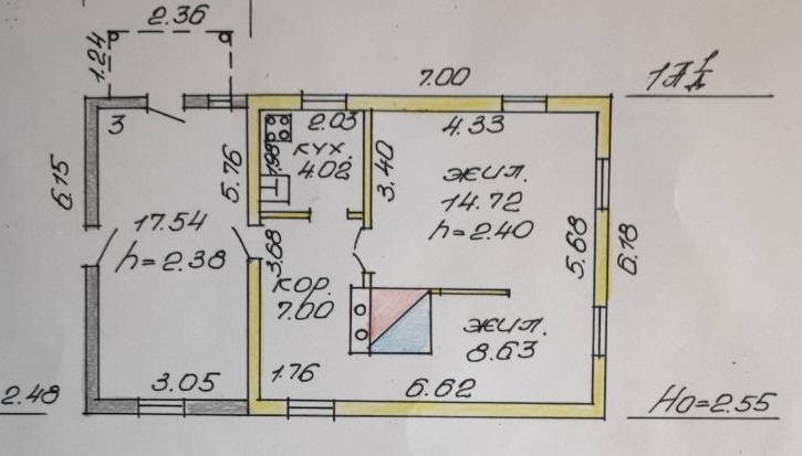 К дому пристроена веранда 17.54 м2.
