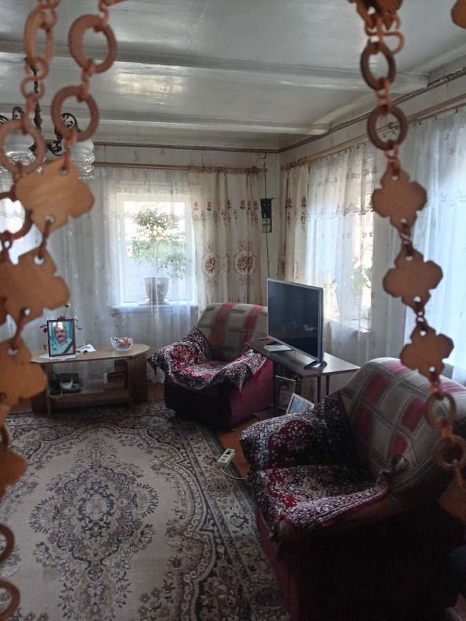 Площадь дома по СНБ 59, 6 м², общая - 55, 7 м², большой зал 22 м², спальня 12 м², просторная кухня 13 м², кладовая - можно оборудовать сан/узел. Центральная канализация и водопровод, газопровод в 10 м. от забора. Печное отопление - 2 печки в хор/состоянии, бак на 80 л для горячей воды, уборная на улице.