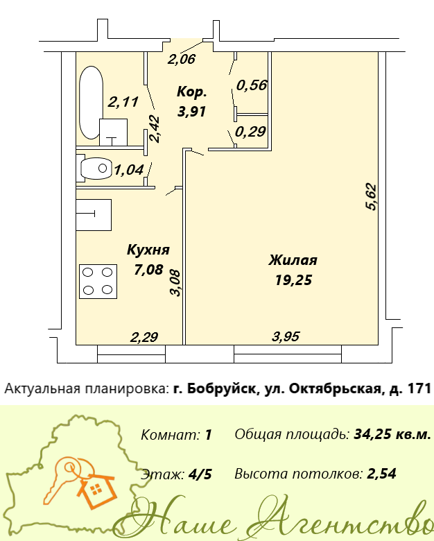 Продается 1-комнатная квартира в центре города, в кирпичном доме по улице Октябрьская, дом 171. Квартира не угловая, 4 этаж, общая площадь 34, 25 кв.м., просторная кухня 7, 08 кв.м., раздельный санузел. В квартире установлены окна ПВХ, жилое состояние. Развитая инфраструктура, возле дома продуктовый магазин, в шаге рынок на «Красноармейской», весь городской транспорт. Стоимость 23 000 у.е. Онлайн показ объекта. Наши официальные партнёры: "Белгосстрах", Банк "БелВЭБ", "Белинвестбанк", "Паритетбанк", "Беларусбанк"