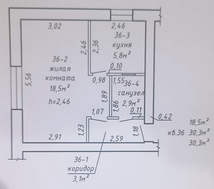 общ. пл. 30, 3 кв∙м., жил. пл. 18, 5 кв∙м, кухня – 5, 8 кв∙м, с/у совмещен, без ремонта,