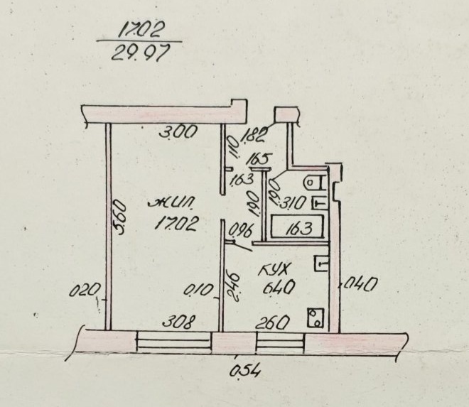 - Общая площадь: 30 м², включая просторную жилую зону площадью 17.02 м² и функциональную кухню размером 6.4 м².