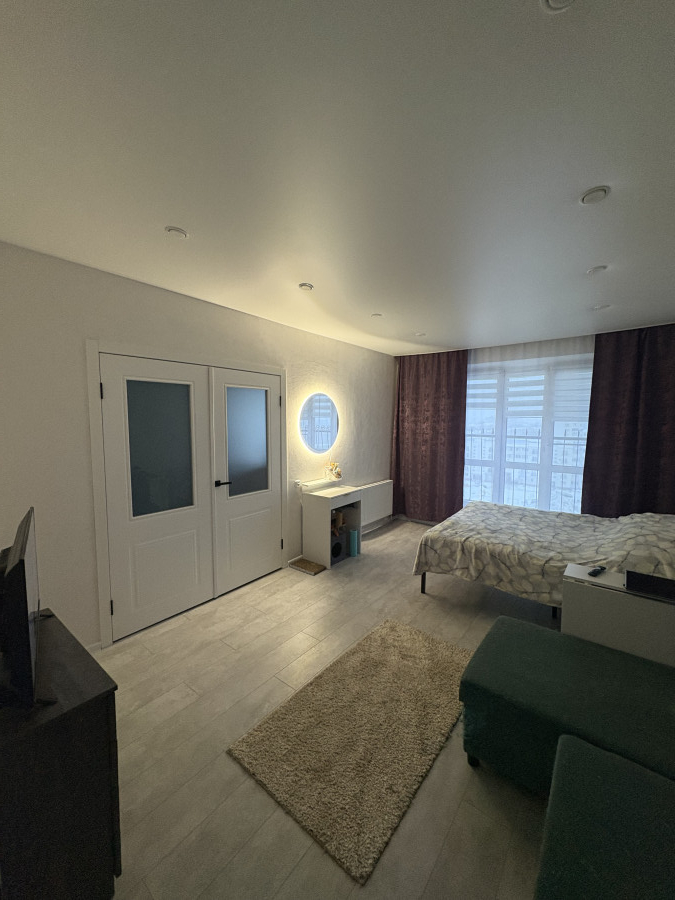 Однокомнатная квартира в районе санатория Ленина. Дом с огороженной территорией, зона отдыха с двумя беседками и мангалами, велобокс, камеры видеонаблюдения. Квартира находится на 9 этаже, светлая, зимой теплая. Свежий ремонт, в ванной плитка керамогранит, есть кондиционер, гардеробная комната. Развитая инфраструктура, супермаркеты в шаговой доступности, школа, остановка общественного транспорта в двух минутах, парковка. Продажа от собственника, агентства просьба не беспокоить.торг реальному покупателю. 52000$ по курсу.