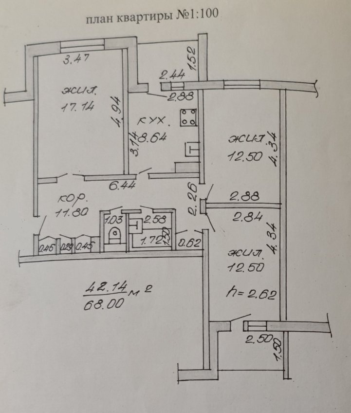 Жилая площадь: 42 квадратных метра (одна комната площадью 14 квадратных метров)