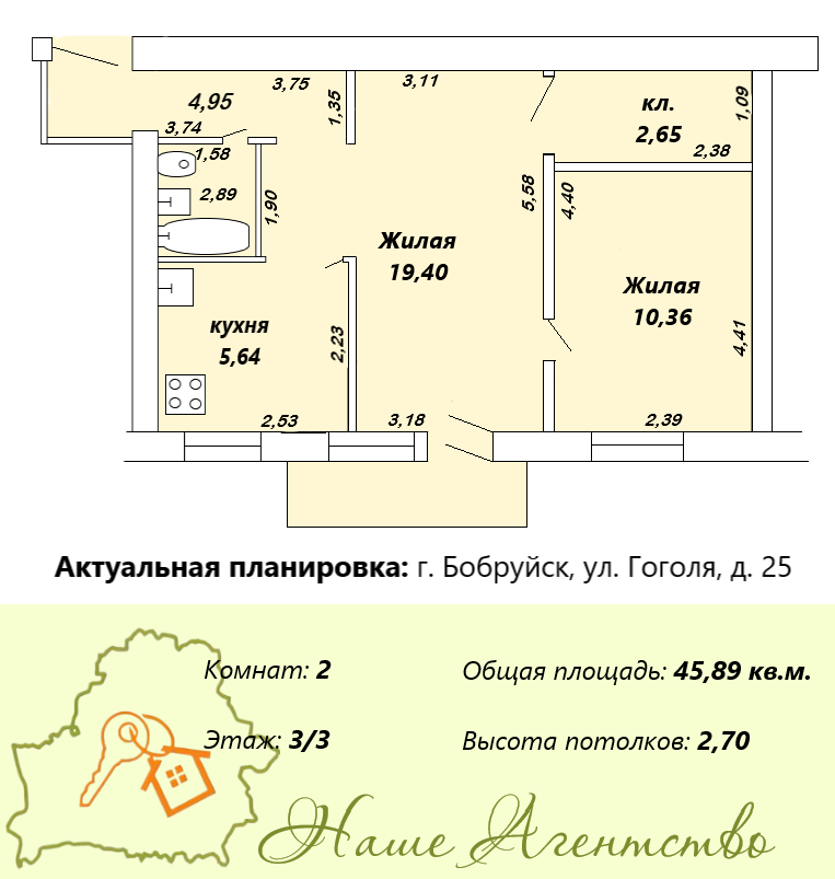 Продается уютная 2-х комнатная квартира по улице Гоголя д. 34, общая площадь 46 кв.м., кухня 6 кв.м., комнаты 19 и 10 кв.м, балкон из зала, есть темная комната, которую можно оборудовать под гардеробную, с/у совмещен. В квартире установлены окна ПВХ. Удобное месторасположение, рядом больница им. Морзонова, магазины, остановка общественного транспорта. Стоимость 23 700 у.е.