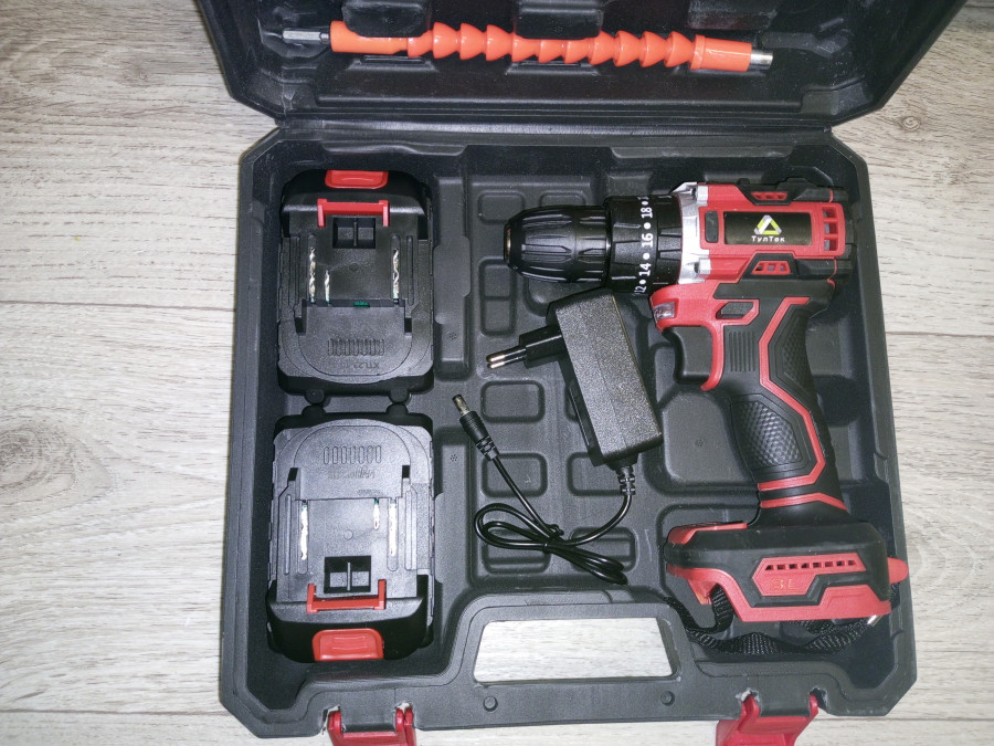 Ударный бесщёточный шуруповёрт в кейсе, с набором головой и бит