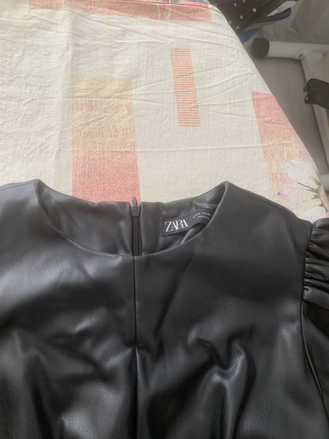 Продам фирменное женское платье ZARA, эко кожа в достойном состоянии, за сзади, ткань плотная, полу обхват груди - 37-40 см, полу обхват талии - 31 см, пола обхват бедра - 38-40 см, длина - 82 см, цвет черный . На фото немного помятое, потому что хранится в сложенном виде . Тел . 8029 622-63-64, есть вайбер и вацап . Постой могу выслать . Цена 27 рублей .