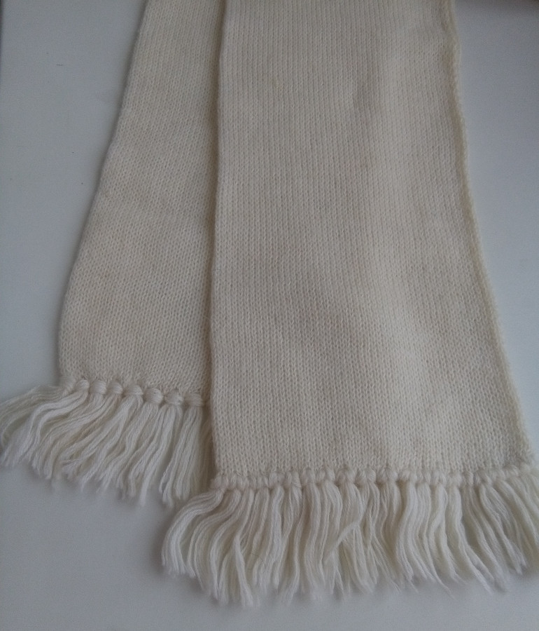Цвет молочный, состав полушерсть, шарф двойной .
