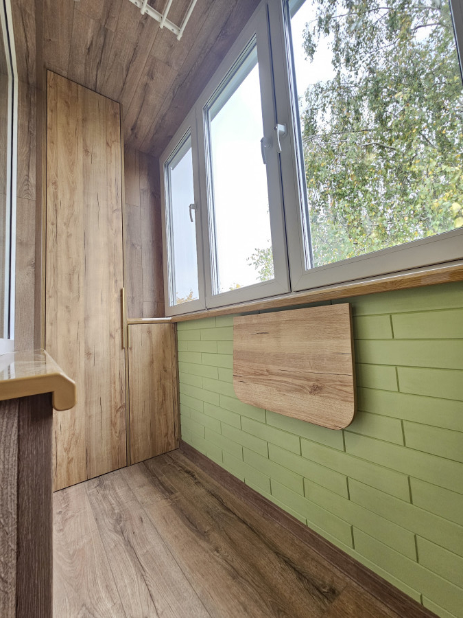 -Внутренняя отделка балкона (ламинат, панели ПВХ, стеновой паркет "кирпичик", вагонка, реечные панели и другие)