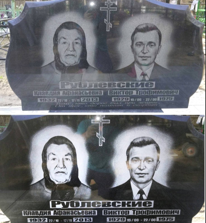 Химическую обработку портретов и символов на гранитных памятниках. Для того, чтобы портрет оставался видимым в любую погоду мы делаем химическую обработку памятника. Химическая обработка создаёт на поверхности памятника тонкую плёнку, не даёт влаге впитываться в поверхность камня.
