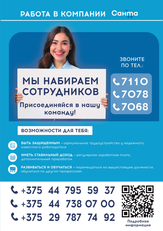 В сеть магазинов САНТА в г.Бобруйск приглашаем на работу КОНДИТЕРОВ. МЫ ПРЕДЛАГАЕМ: • Уровень заработной платы от 1 470 бел. руб. на руки.•График работы 2/2;•Работа рядом с домом;•Возможность подработки;• Компенсация проезда;•Обучение и развитие;•Повышение разряда за счет компании;•Карьерный рост;•Материальная помощь к значимым событиям;•Надбавка за стаж; ОБЯЗАННОСТИ: • Изготовление кондитерских/хлебобулочных изделий;• Соблюдение технологии производства, стандартов, регламентов и инструкций компании, а также нормативных документов; • Контроль сроков годности и качества продукции. ТРЕБОВАНИЯ:• Желателен опыт работы в аналогичной должности;• Для кандидатов без опыта работы предусмотрено ОБУЧЕНИЕ с последующей выдачей свидетельства государственного образца о присвоении профессии/разряда за счет компании.
