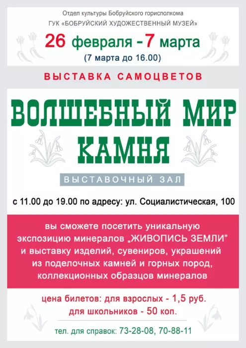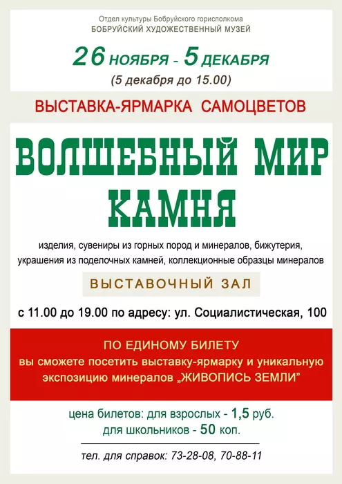 Бобруйский художественный музей организует передвижные и стационарные выставки живописи, графики, скульптуры, керамики, декоративно-прикладного искусства, дизайна, которые отражают современные тенденции в области изобразительного искусства, традиций народного творчества.