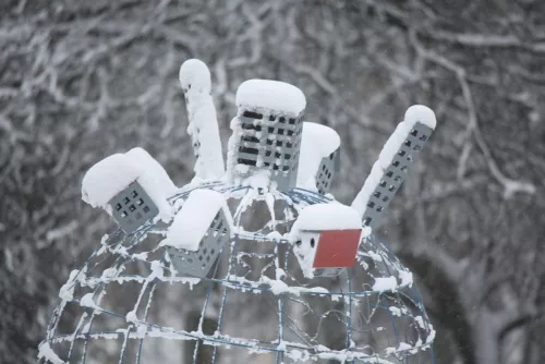 Снежную горку рядом с Дворцом Искусств оградили лентой и снабдили угрожающим объявлением