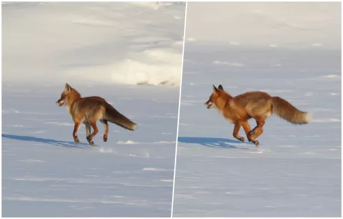 Две лисы на замёрзшей Березине в районе ул. Береговой в Бобруйске. Фото, видео
