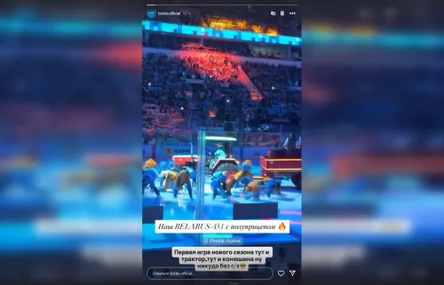 Трактор Belarus-451 из Бобруйска выкатился на лед Минск-Арены перед матчем. Беларусы выиграли, но потом ругали лед