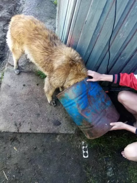 В Бобруйском районе пёс засунул голову в отверстие в бочке и застрял - помогли спасатели
