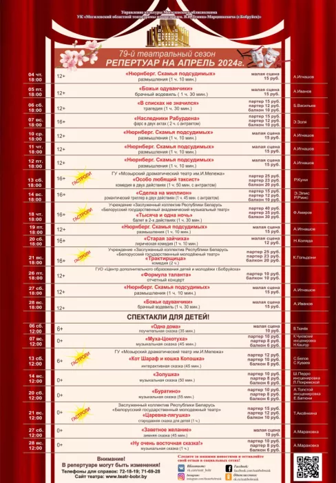 Репертуар театра на апрель