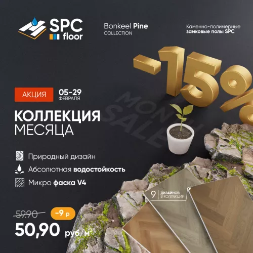 Акция «Коллекция месяца» -15% на каменно-полимерные полы SPC