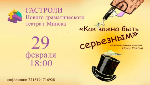 «Как важно быть серьезным». Бобруйск посетит Новый драматический театр г.Минска!