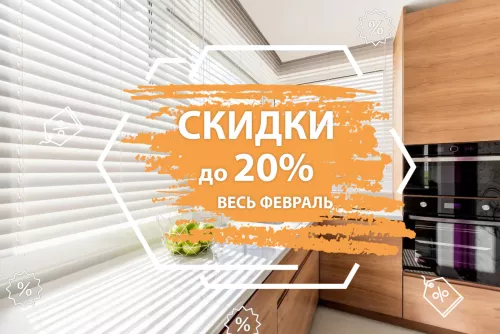 Акции в феврале: скидки до 20% на потолки, жалюзи и шторы плиссе во всех салонах Бобруйска!