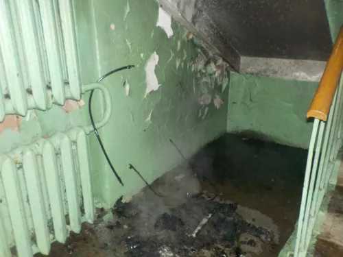 Пожар в подъезде на Горького. Сгорела детская коляска.