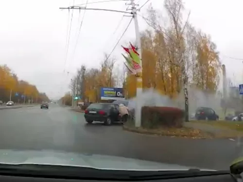 Бобруйские охрановцы потушили дымящийся автомобиль