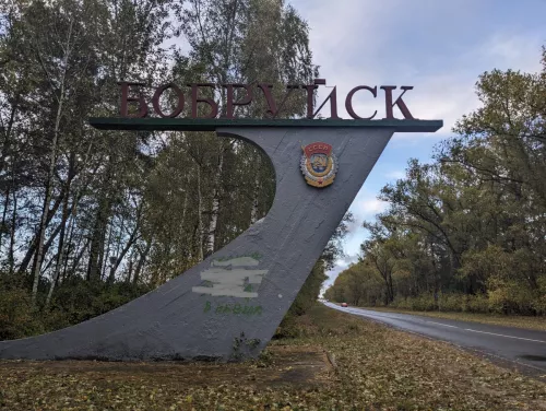 Рекламой наркомаркета расписана въездная стела в Бобруйске со стороны Ломов
