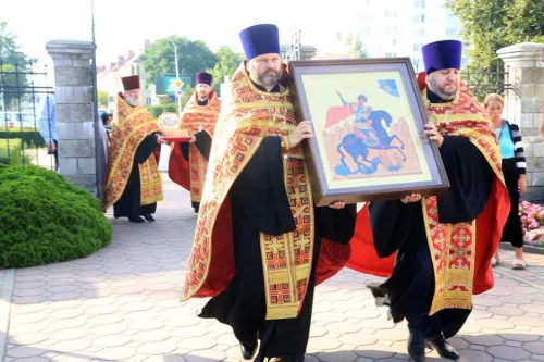В Георгиевском храме Бобруйска торжественно встретили ковчег с мощами Георгия Победоносца