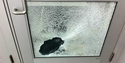 В Бобруйске парень на самокате внезапно подъехал к магазину, разбил стеклянную дверь и уехал