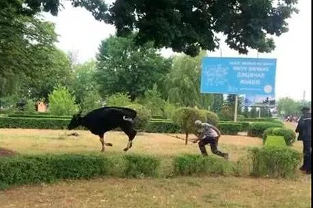 Бычок в Бобруйске сначала прошелся по магазинам, а потом устроил забег со зрелищным финалом