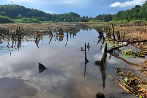 Бобер осушил целое озеро: рыболовы пытались спасти водоем, но своих сил не хватило