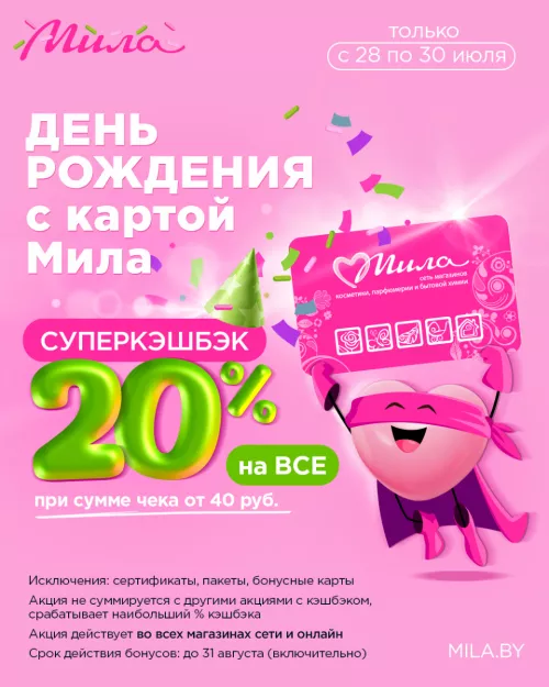 Только по 30 июля! Суперкешбэк на всё и тысячи товаров на скидках в магазинах «Мила»