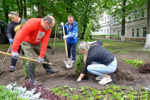 Депутаты Бобруйска озеленили сквер у памятника освободителям