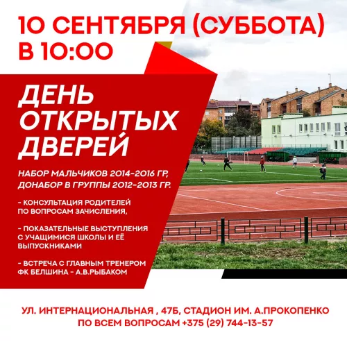 ДЮСШ «Белшина» приглашает мальчишек в группы для занятий футболом