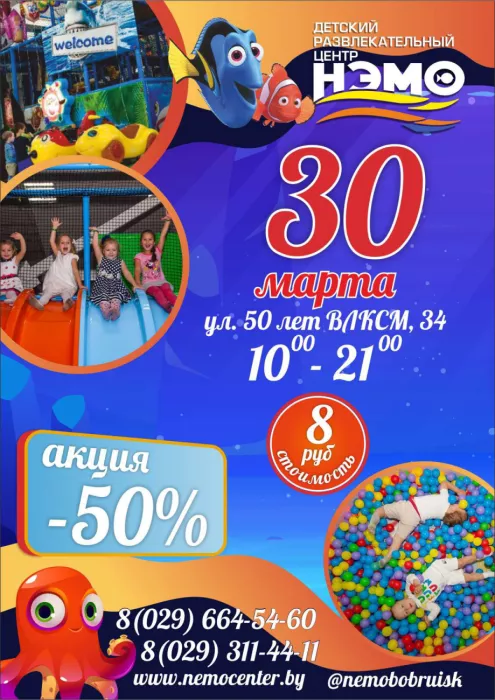 7 апреля, в ДРЦ «НЭМО» супер акция -50%