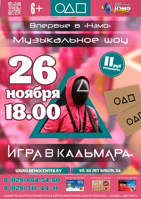 26 ноября в 18.00 приглашаем принять участие в музыкально- игровом шоу «Игра в кальмара»