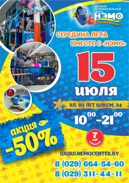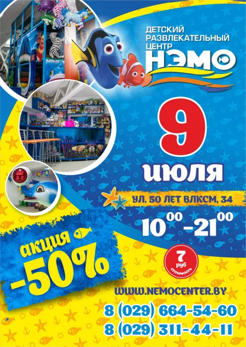 15 июля в Детском развлекательном центре «НЭМО» супер акция -50%