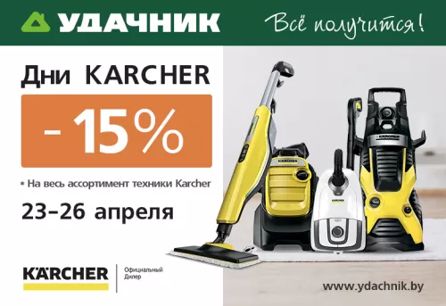 Минус 15 % на весь ассортимент KARCHER в магазине «Удачник» в Бобруйске