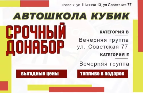 Объявлен СРОЧНЫЙ донабор групп в Автошколу КУБИК