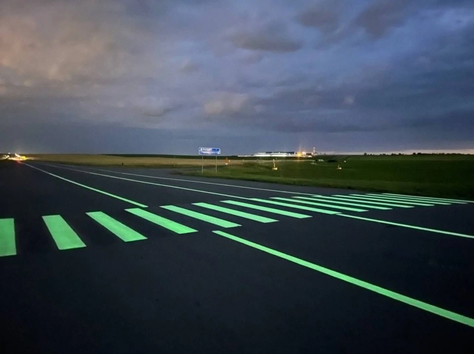На трассе Бобруйск-Мозырь стартовал эксперимент с люминесцентной разметкой